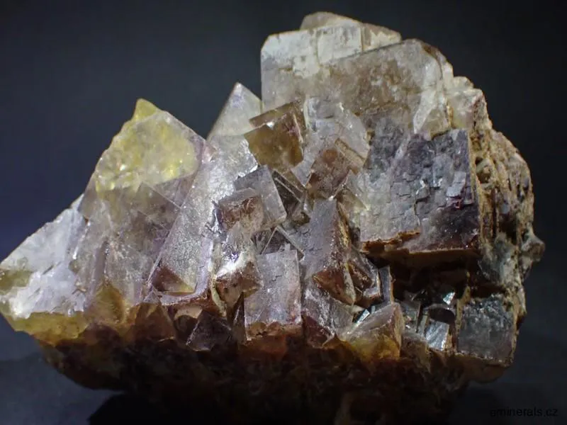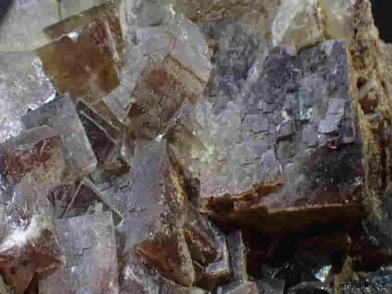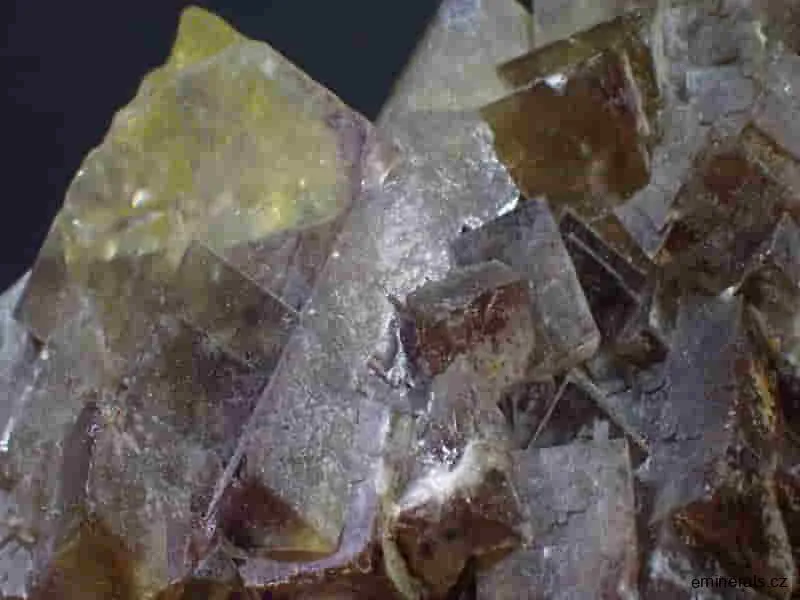 Pěkný velký vzorek fluoritu medové barvy s fialovým zonováním, největší kostka fluoritu měří 25mm. Krystaly fluoritu v dobré kvalitě i barvě. Tento vzorek fluoritu pochází ze sberu z roku 1978.