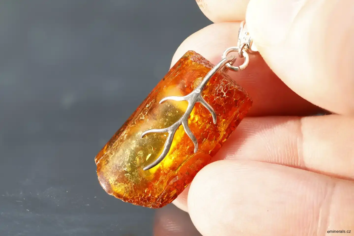 Úvod » Šperky s jantarem » Přívěsek na krk - Baltský Jantar a stříbro 30x15x10